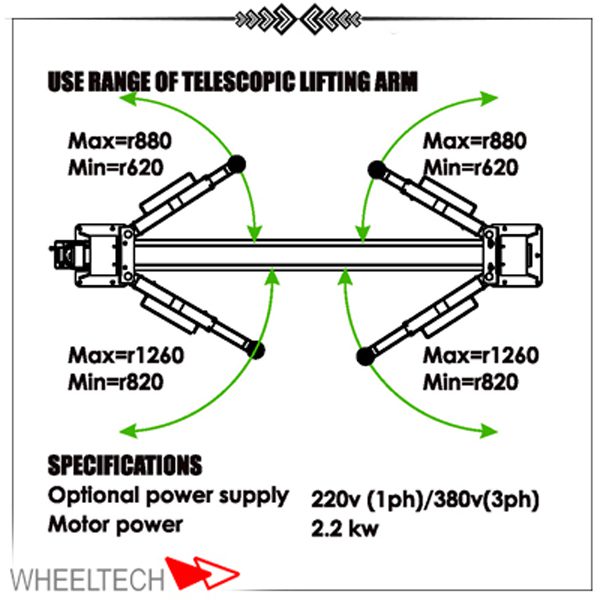 • ارتفاع جک 2824 میلی متر، عرض جک 3365 میلی متر و توان بالابری 1930میلی متر است.