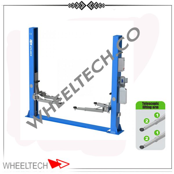 جک دو ستون آپو APO 40CU با ظرفیت ۴ تن، مناسب برای بلند کردن خودروهای سواری و شاسی‌بلند، دارای سیستم هیدرولیک قوی و قفل ایمنی دوبل.